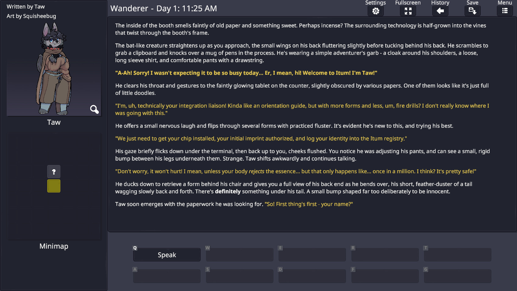 A text-based roleplaying game that runs in your web browser. Set in Itum, a high-tech nation, the player will explore strange towns, flirt with locals, and uncover the past.