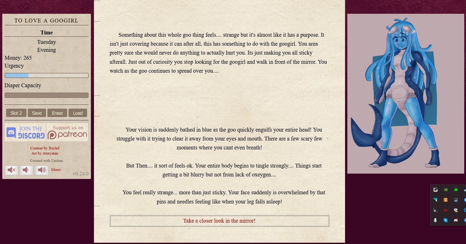 This game is about a guy that gets involved with a googirl... unfortunately that has consequences. Consequences that require diapers! This game includes all sorts of diapers including DIAPER SUITS! There is some sissy content (more is added with each update). Although the focus is on the diapers there is tons of AB content as well.